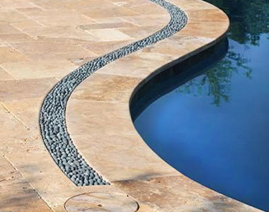 Antique Travertine Pool Coping Tiles. Unfilled Travertine provides a non-slip surface. We have matching pool paving and pool pavers available 610mm x 406 x 30mm and 610mm x 610 x 30mm stocked The tumbled edge is rounded slightly top and bottom to take away any sharpness on the exposed edge It creates a natural, square edge look Other sizes available by request