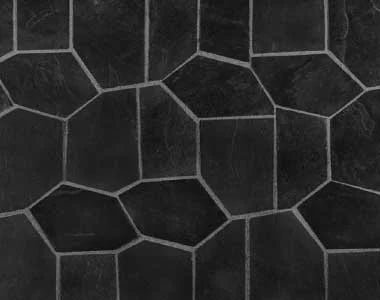 Ebony Grey-Black Modula Interlocking Crazy Pave Stone Mounted onto Mesh Sheets.