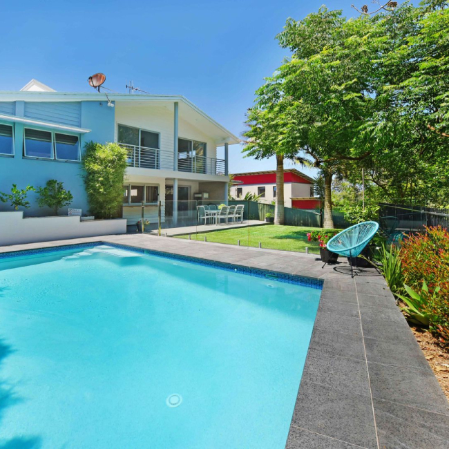 Midnight Granite Pool Coping Tiles. The Surface is Exfoliated and Brushed, providing a non-slip finish for your pool paving.