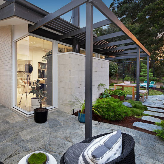 Stone cladding with no straight or sawn edges. 20mm and 30mm stocked.Pieces are approximately 200mm – 600mm in diameter. This is not offcut material and is a true stone cladding with natural edges. Genuine Bluestone contains between 5-50% catspaw per tile, it is a natural occurrence in ALL Bluestone sold here in Australia. You have the option of filling these when grouting with our Bluestone colour matched grout(making them near invisible) or to leave them open as nature intended.