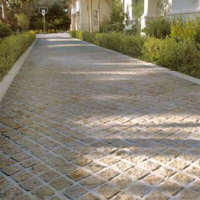 These golden granite cobbles are a great cobblestone solution for your renovation or build.